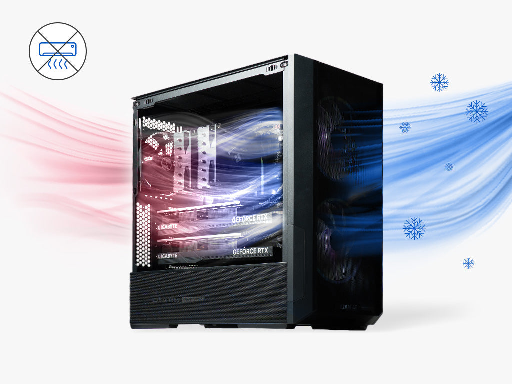 Each PC comes with minimally 3 fans, which is more than enough to keep the PC cool. So you can rest assure that the PC will not overheat even if you are gaming without aircon!